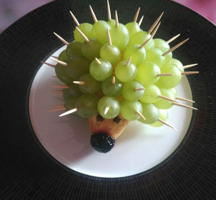 TOUTES LES PETITES SECTION DE L ‘ECOLE SE RETROUVENT POUR LA SEMAINE DU GOÛT VENDREDI MATIN ET FABRIQUENT UN HERISSON RAISINS! ON SE REGALE ENSUITE A MANGER NOS BROCHETTES!