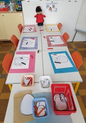 objectifs pédagogiques : Maîtriser un geste ( décoller et coller des gommettes). Respecter la consigne ( ne pas coller sur sa photo!). Finaliser son travail et renforcer son estime de soi.