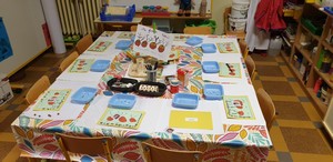 Objectifs pédagogiques :découverte du matériel et des ingrédients à travers la préparation d’une tarte. Enrichir son vocabulaire, respecter des étapes et des consignes . Préparer pour les autres.