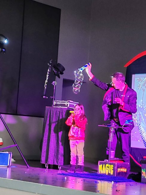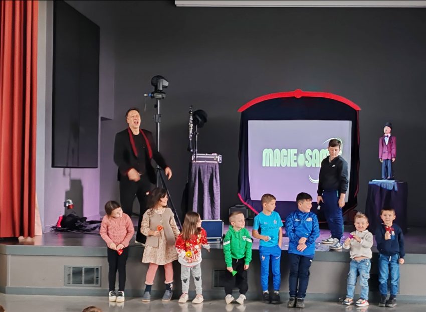 « Magie Sam ». Merci à l’Amicale des parents qui a offert le spectacle aux enfants.