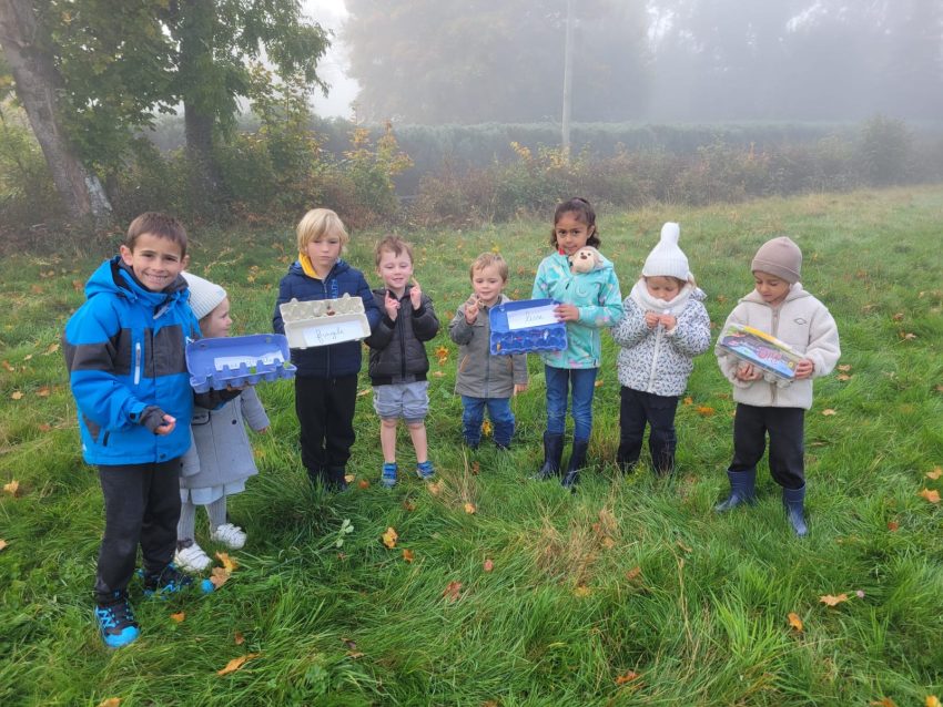 A nouveau avec les MS-GS de Maitresse Caroline, nous avons cherchĂ© des Ă©lĂ©ments de la nature qui rĂ©pondaient Ă un mot : piquant, lisse, Ă©pais, lourd, rugueux, long… Rien de mieux qu’expĂ©rimenter pour mieux comprendre.