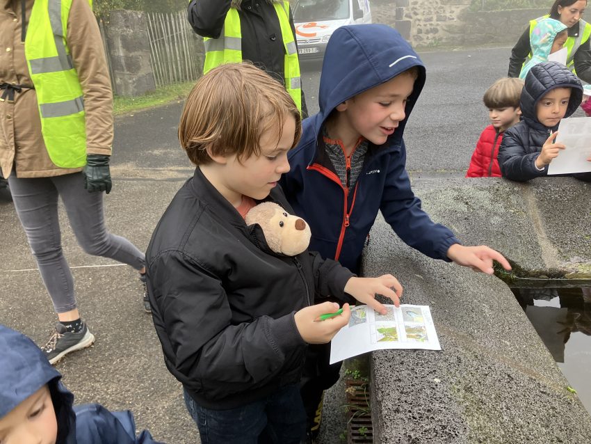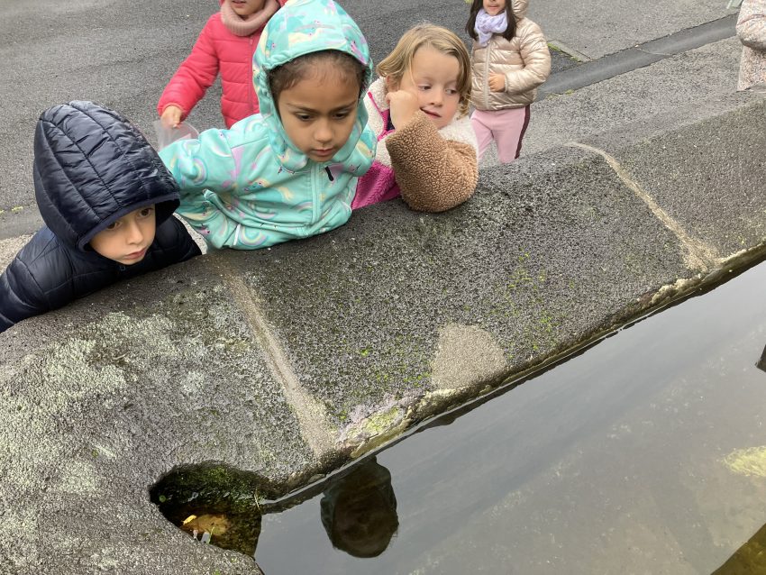 MalgrĂ© le mauvais temps, les Ă©lèves ont dĂ©couvert le patrimoine de l’eau Ă proximitĂ© de l’Ă©cole. Avec un rallye photo, ils ont observĂ© en dĂ©tail les fontaines. Ils ont aussi accompagnĂ© et aidĂ© un camarade de maternelle, de quoi travailler l’empathie et le langage.