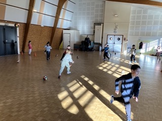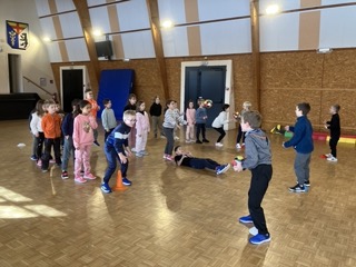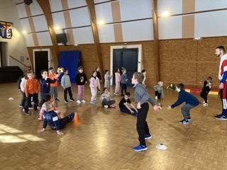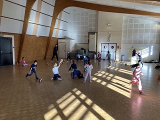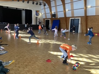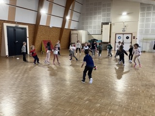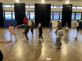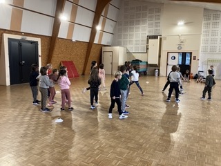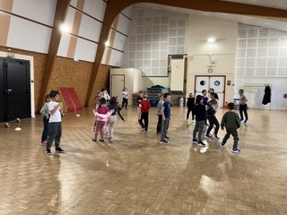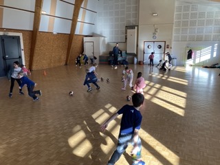 Quelques images des séances de sport avec Anthony. Jeux traditionnels et jeux de ballons: première approche du lancer, rattraper, intercepter, esquiver.