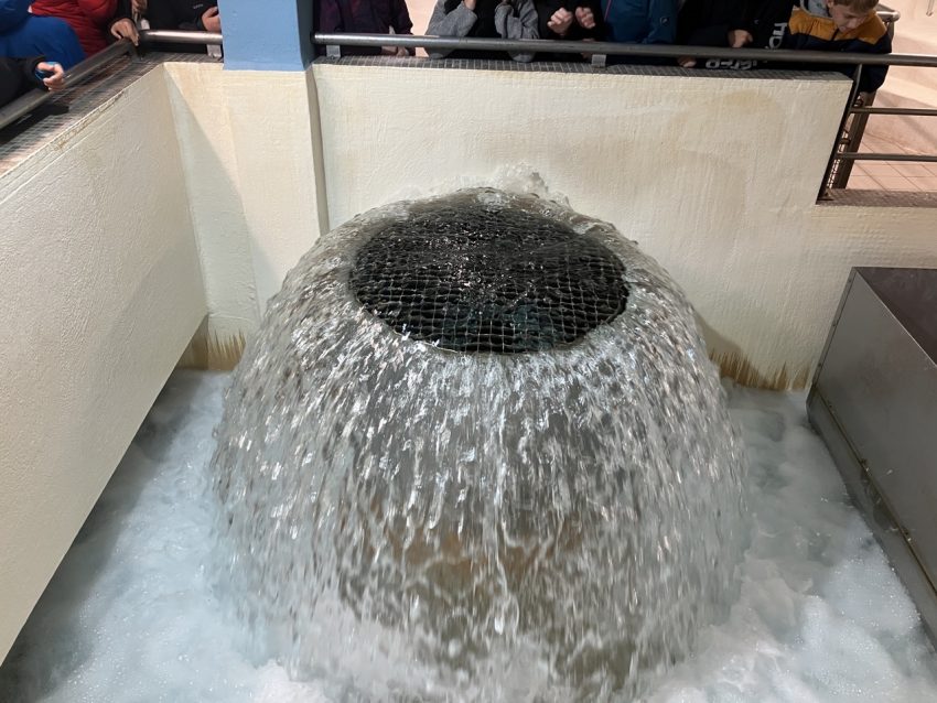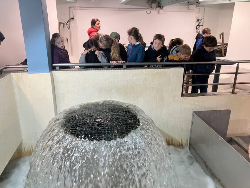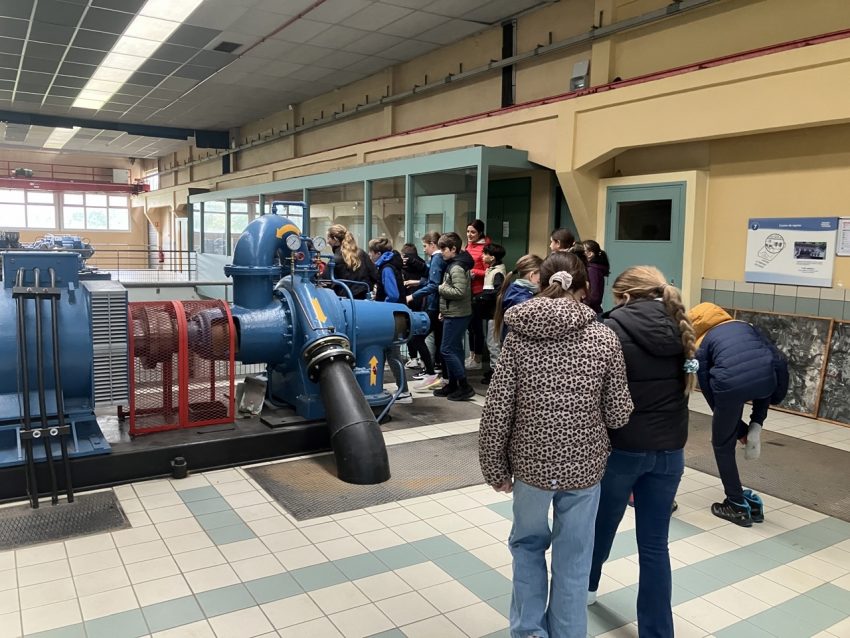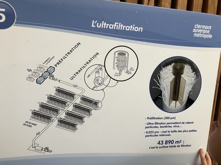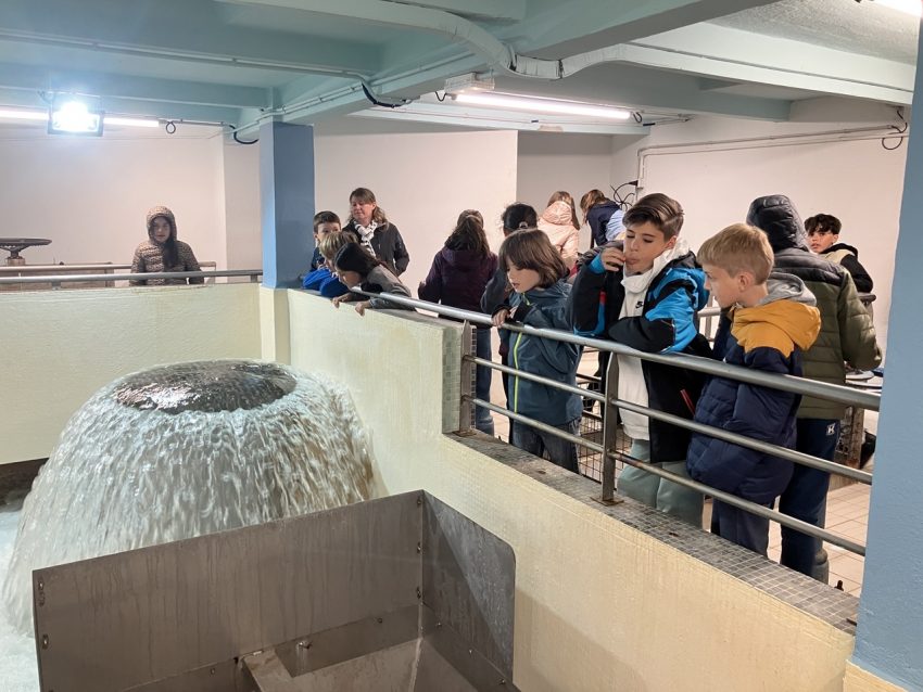 L’eau que nous utilisons Ă Orcines vient directement des puys mais nous sommes allĂ©s voir comment on rend l’eau potable pour Clermont-Ferrand Ă l’usine de potabilisation de Cournon.