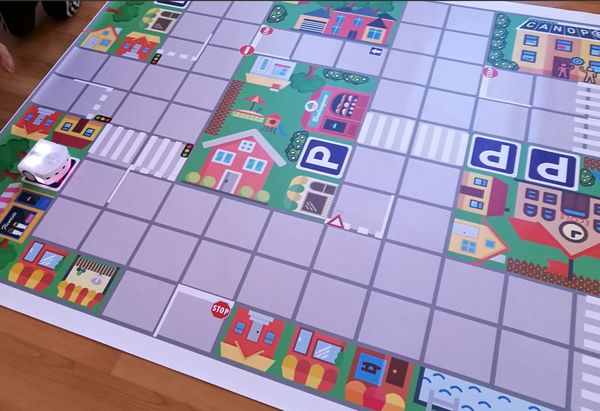 Lorsque nous avons terminé notre programme, nous validons et nous posons notre robot sur la piste pour qu’il réalise le parcours choisi.