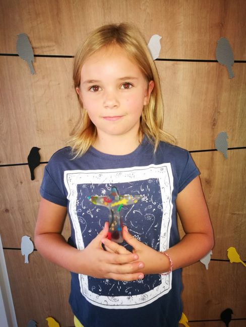 Nina nous fait une présentation du Brésil où elle a vécu. Ici une statuette du Christ Rédempteur de la montagne Corcovado.