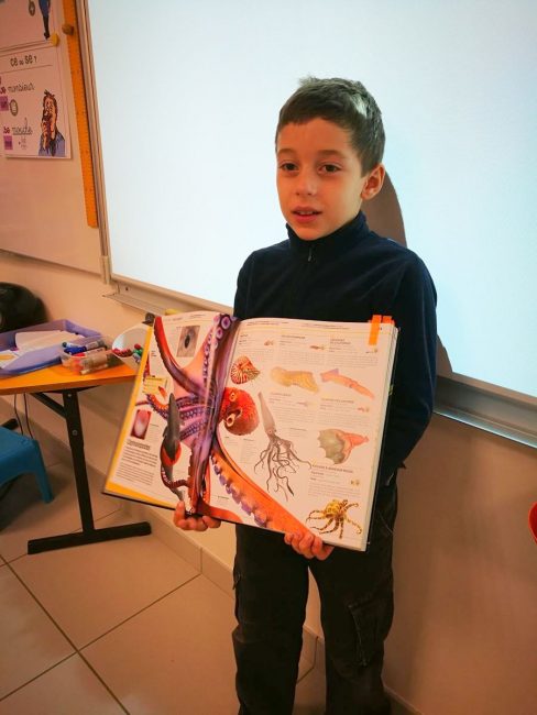 Antoine qui adore les animaux, nous présente son nouveau livre sur les animaux marins.