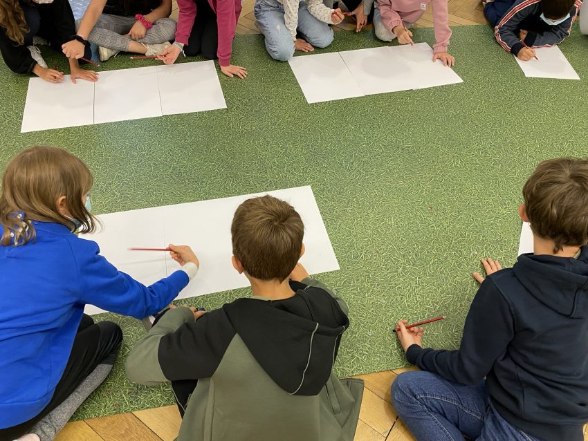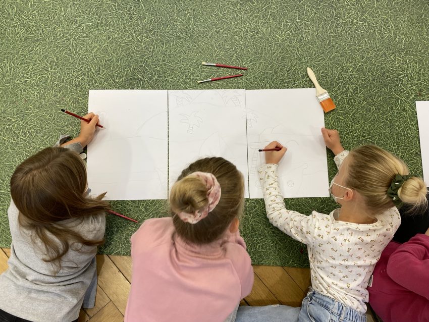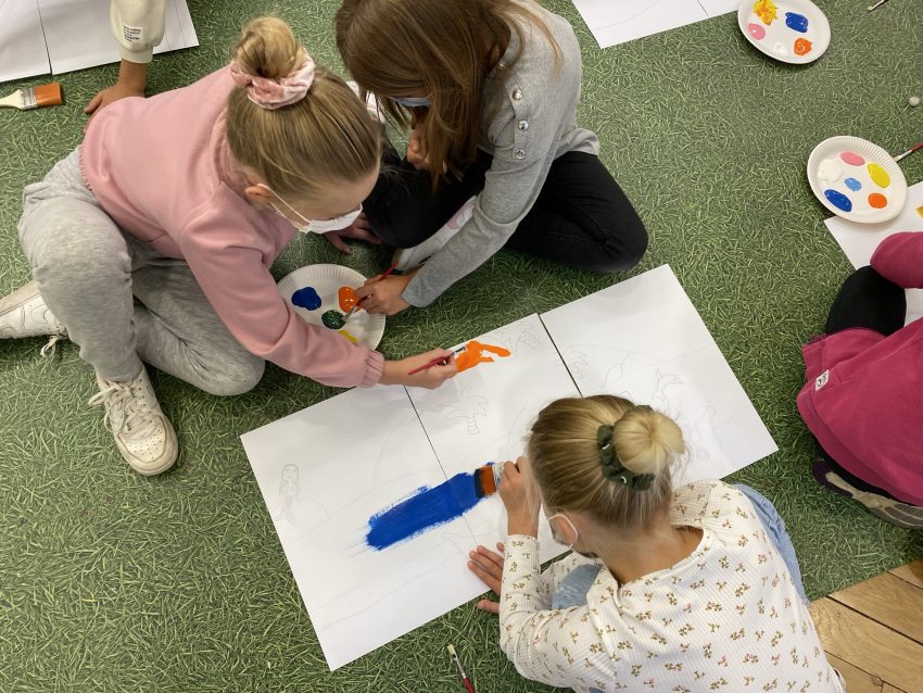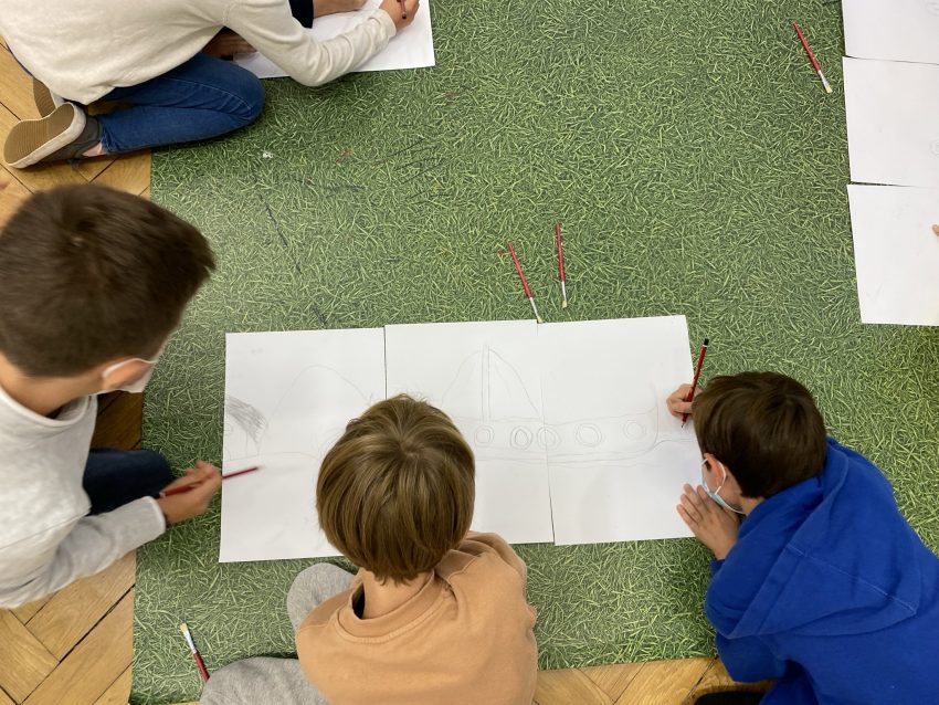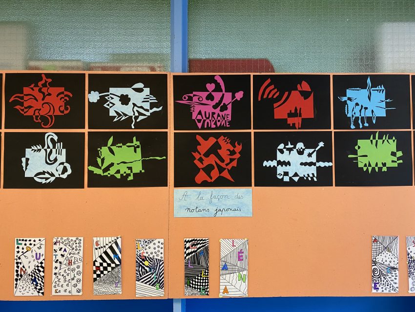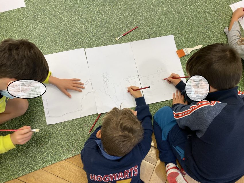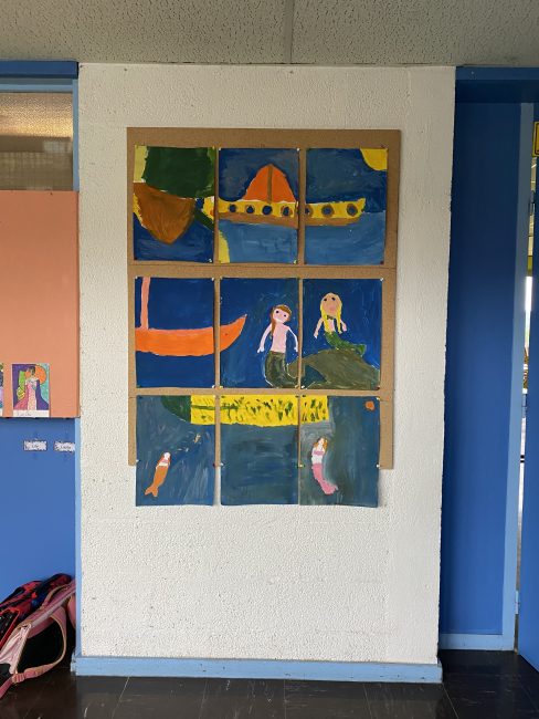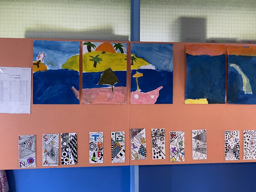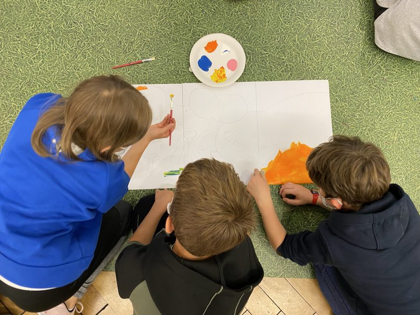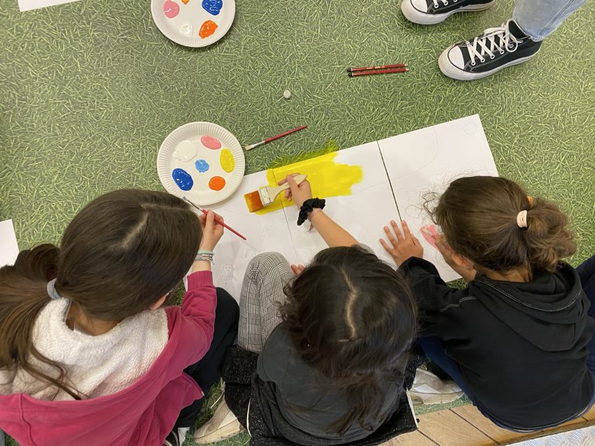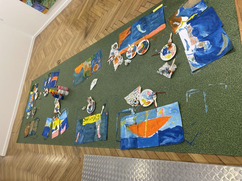 Ensuite, nous avons réalisé un triptyque par groupe de trois ! Nous avons eu le droit d’utiliser seulement deux pinceaux qui avaient des tailles assez larges. Nous n’avions pas le droit de faire des choses minutieuses.