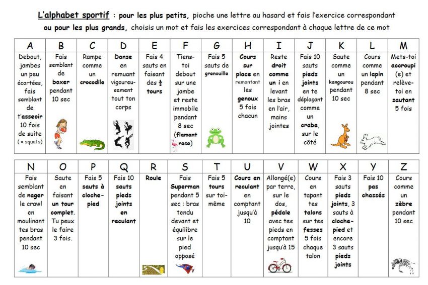 Et enfin pourquoi ne pas faire le nom de ces animaux avec un nouvel alphabet sportif!