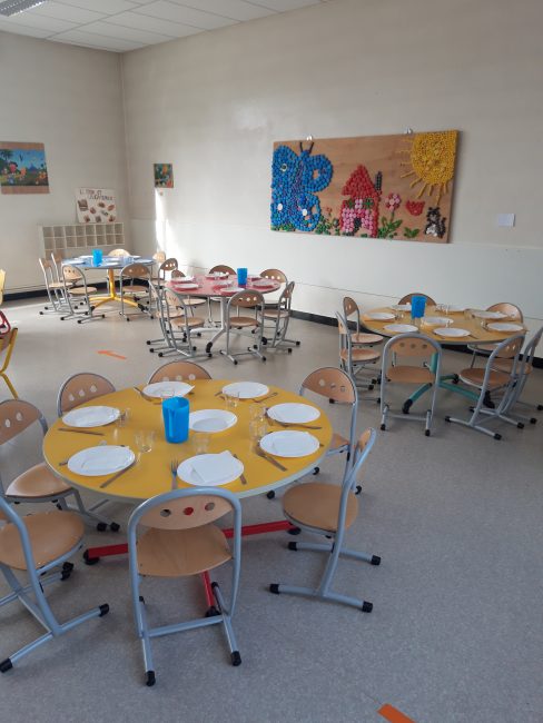 Voici un aperçu de la salle des repas pour les élèves de maternelle