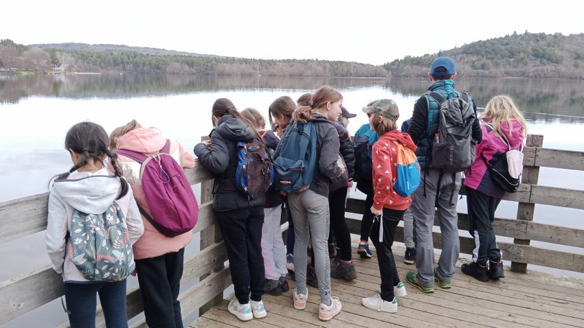On a commencĂ© Ă marcher, on a fait deux groupes, un avec Michel et un avec JoĂ«l. On Ă©tait avec Michel. On a commencĂ© Ă partir et on a observĂ© des murs de pierre qui Ă©taient en rĂ©alitĂ© du granit. Au milieu de la balade, on a aperçu des canards, les colverts, qui se suivaient dans le lac. Aussi, Michel nous a expliquĂ© que selon les scientifiques, le lichen serait des algues qui, Ă la crĂ©ation de la Terre quand les continents n’existaient pas, seraient remontĂ©s sur les arbres.