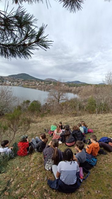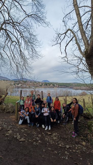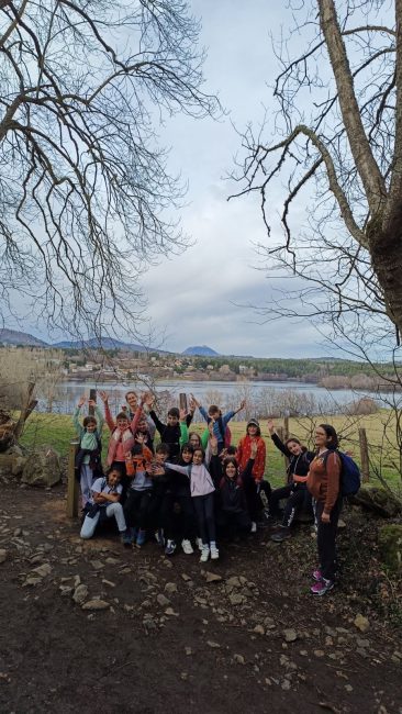 Nous nous sommes assis sur une petite cĂŽte oĂč nous avons pu apercevoir le lac vu dâen haut. Nous Ă©tions aux 3/4 du chemin, câĂ©tait dĂ©jĂ presque la fin !!!!!!! Nous sommes passĂ©s au-dessus dâun petit ruisseau. Nous avons pris une route qui nous Ă menĂ© Ă notre point de dĂ©part.