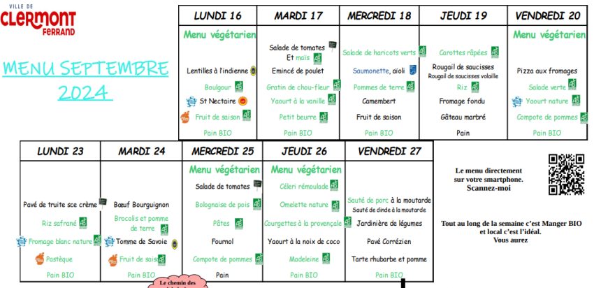 Restauration scolaire et services périscolaires Menu du mois : cliquez ici Le tout en 1 : École de la Récré, restauration scolaire, Service Municipal d’Accueil Périscolaire (SMAP), Vendredi Découverte, accueil de loisirs du mercredi après-midi et EMS cliquez ici