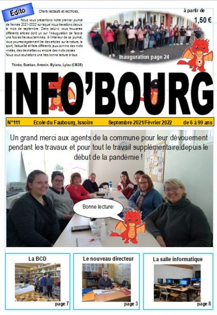 Le journal INFO’BOURG sera en vente à partir de jeudi 4 février à l’école