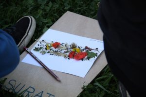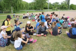 L’atelier biathlon servait d’entraînement pour l’après-midi. Cependant, si le matin les enfants étaient par équipes de deux, lors de la grande compétition, les équipes étaient composées de quatre enfants. Ainsi, les étudiants devaient se jauger et mettre en place une stratégie pour l’après-midi. L’atelier « petites bêtes » amenait une vision scientifique à l’événement, en attirant l’attention sur l’environnement et l’écosystème du parc. Les enfants devaient réaliser une carte en collant des échantillons d’espèces végétales présentes dans le parc, et dessiner les insectes.