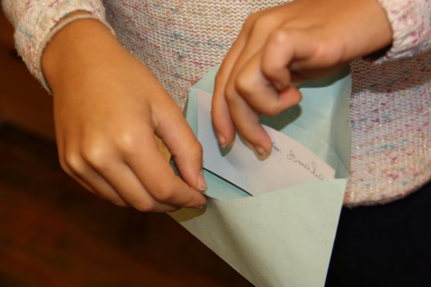 A l’école, les élèves choisissent deux représentants. En CM, les élèves inscrivent le nom des candidats sur un papier qu’ils insèrent dans une enveloppe.