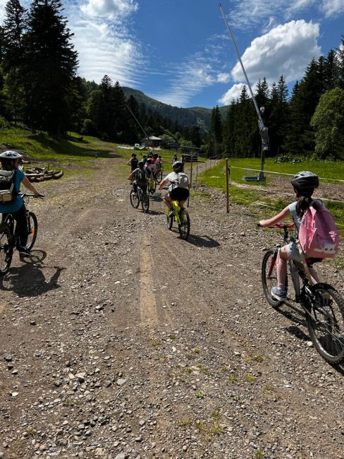 Après notre installation et notre bon « burger » cantalou, nous sommes partis en activités : VTT pour la classe de Mme BARNOLA et escalade pour la classe de Mme SALANON.